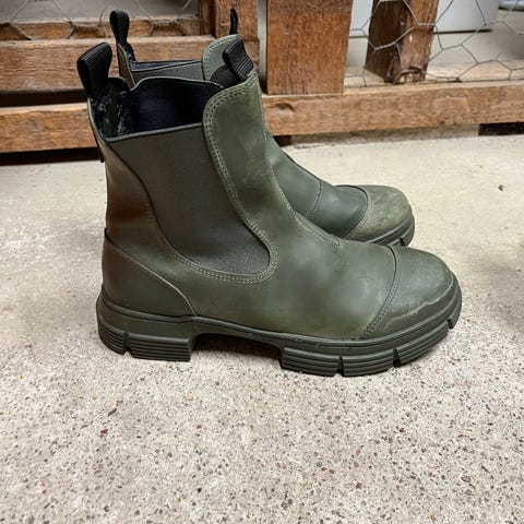 Ganni Rubber Boots kumisaappaat. Koko 39. Siisti kunto. Ainut isompi moite oikeassa kantapäässä oleva halkeama. Edelleen käyttökelpoiset halkeamasta huolimatta 🙂