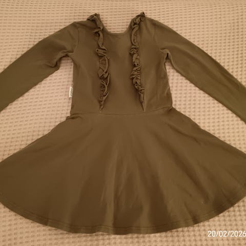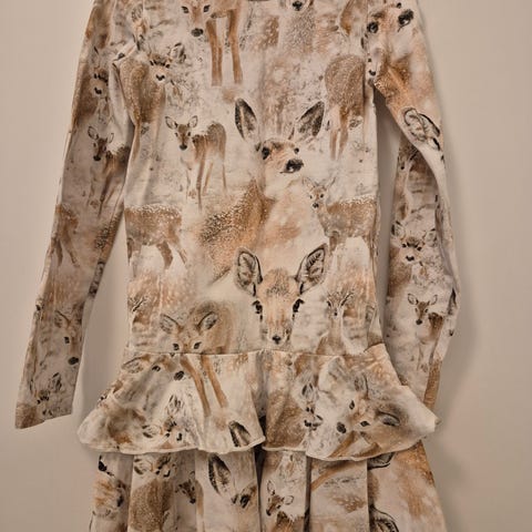 Gugguun kaunis mekko koossa 116. Joitain kuosiin hukkuvia tahroja bongasin tarkkaan katsomalla. Lisäksi hihansuut hennosti tummuneet. Ei ole kokeiltu poistaa tahroja eikä hinkata hihansuita vaaleammaksi. Muuten kunto hyvä. Nouto Kampista tai toridiili.