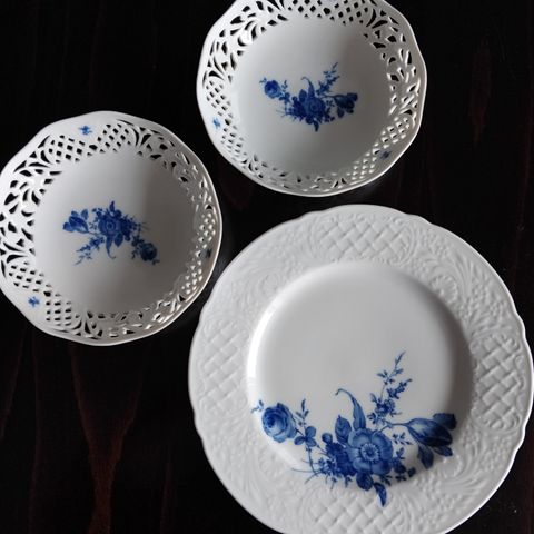 Lautasessa on tyypillisesti kohokuvioinen reunus ja käsin litografoitu sininen kukkakuvio.