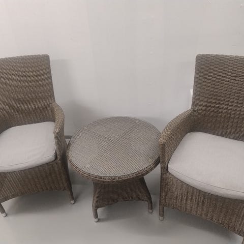 2kpl rottinkisia korituoleja. Istuintyynyjä ei ole, näihin sopii jyskin istuintyynyt. Lähes käyttämättömät ja hyvässä kunnossa.