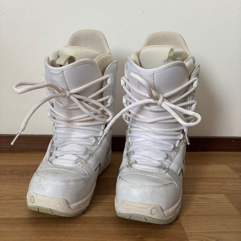 Myynnissä myös laudan kanssa käytetyt Burton Coco valkoiset naisten lautakengät 40,5 koossa 30€. Voidaan myydä pakettina 65 €.