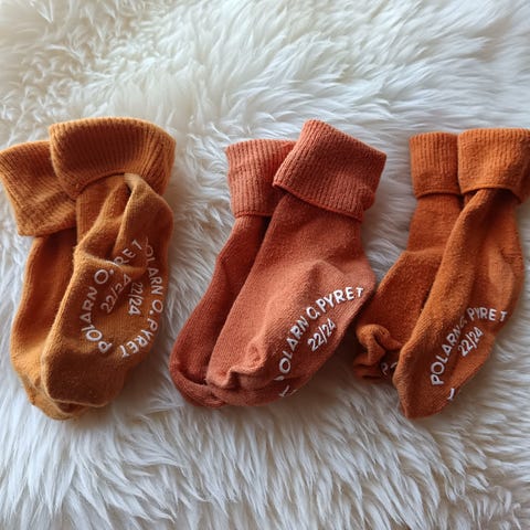 Polarn o pyret jarrusukat. Koko 22-24. Yhdellä käytetty. Käytetty ok kunto. Ehjät, mutta jarruissa kulumaa sekä värit uudesta haalennut. 10 paria.