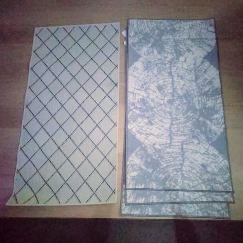 Myynnissä kaksi Eija Rasinmäen mattoa. Koot n. 150x220cm ja 120x185cm. Molemmat ovat pesulan pesun jäljiltä.