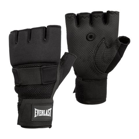 Everlast Gel Hand Wraps -siteissä yhdistyvät tuki ja vaimennus, mikä tekee treeneistä mukavampia ja turvallisempia. Geelipäällysteinen kämmen, jossa on tuuletusaukot ja verkkopaneeli takana, varmistaa sekä suojan että hyvän ilmavuuden.Joustavan tarranauhan ansiosta istuvuutta on helppo säätää ja ranteet saavat lisätukea liikunnan aikana. Neopreeni-, geeli-, joustomateriaali- ja polyesterisekoite ja spandex ovat yhdistelmä joustavuutta ja mukavuutta.