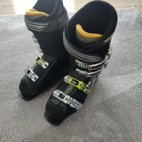 Hyväkuntoiset vähän lasketut sukset ja monot.