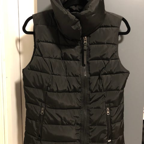 Superdry Eclipse Navy Puffle toppaliivi, koko S. Laivastonsininen, jossa punaiset vetimet vetoketjuissa. Kiinnitys vetoketjun lisäksi puisilla nyörinapeilla ja painonapeilla. Teddyvuorinen huppu ja vartalo-osa, kaksi vetoketjullista taskua, kirjailtu logo olalla takana ja Superdry-merkki rinnassa. Vuorin alareunassa on hieman värjäymää farkuista. Sisäpuolella Superdry Sport -merkintä on irronnut kokolapun vierestä. Puisissa nyörinapeissa näkyy kulumaa. Muuten erinomaisessa kunnossa ja ehjä. Pesty sensitive-pesuaineella ja hajuton.
