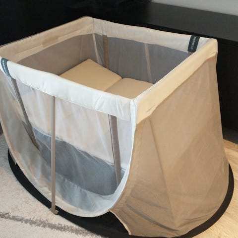 Erittäin hyvässä kunnossa oleva beemoo-merkkinen matkasänky ja erillinen patja.