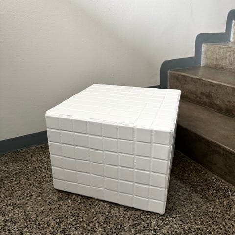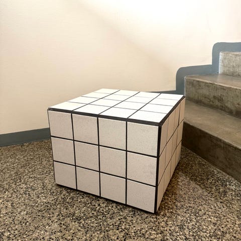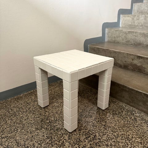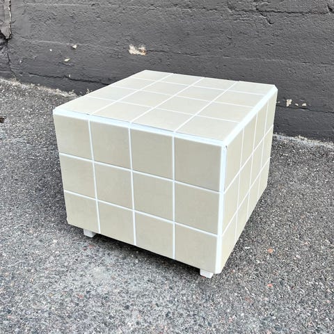 Myydään käsityönä tehty laatoitettu pöytä/kuutio. Sopii loistavasti vaikkapa sohva-, kukka- tai yöpöydäksi.