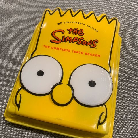 The Simpsons The Complete Tenth Season dvd-boksi. Kokoelma sisältää Simpsonit-animaatiosarjan kymmenennen tuotantokauden jaksot usealla dvd-levyllä.