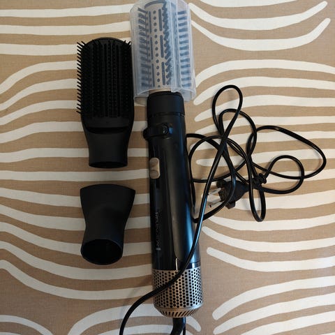 Remington Blow Dry & Style Caring 800W -ilmakiharrin, joka on suunniteltu lyhyiden ja keskipitkien hiusten muotoiluun. Hiusten kuivaus ja muotoilu yhdellä kerralla. Pari kertaa kokeiltu, mutta sittemmin jäänyt kaappiin.