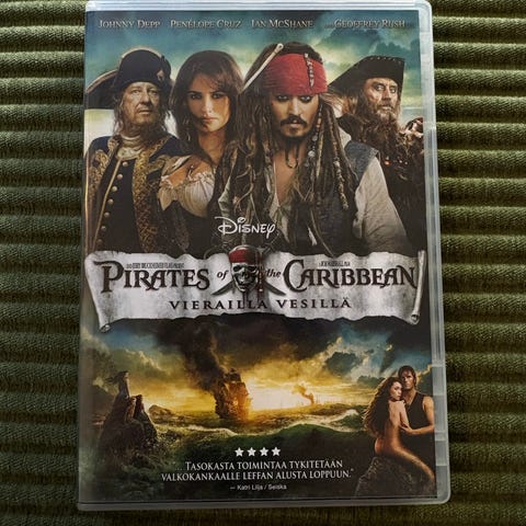 Myydään Pirates of the Caribbean: Mustan Helmen Kirous DVD ruotsin kielisillä kansilla. Elokuvaan voi valita suomen kielisen tekstityksen.