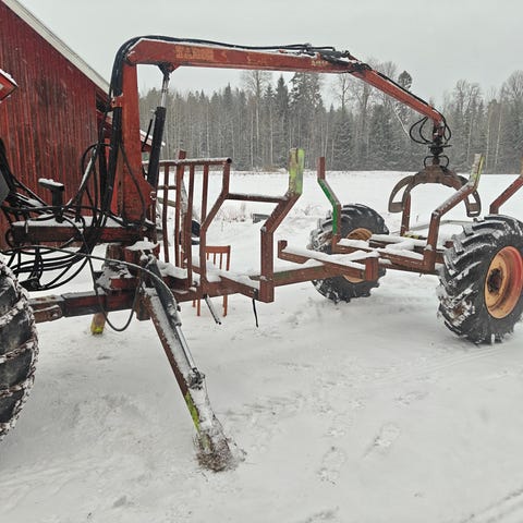 metsäkärry tukkikärry metsäperävaunu puutavarakärry kuormain kourakuormaaja hakki souvari keinuteli 8tn metsäkärry kuormaajalla metsäkärry traktoriin puukärry