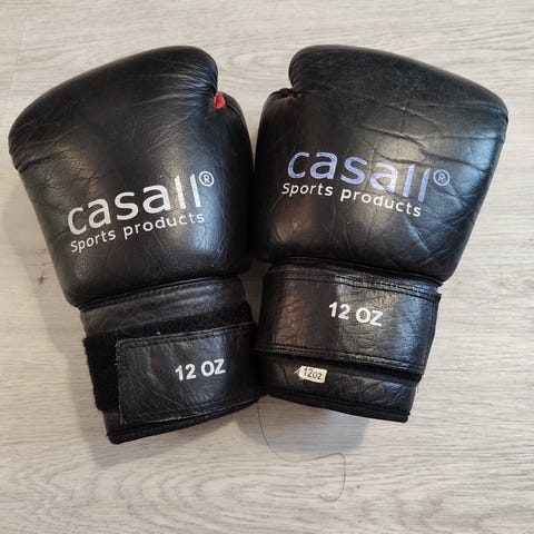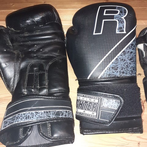 Fighter Sport nyrkkeilyhanskat, koko 12 oz. Väri musta valkoisilla yksityiskohdilla. Hanskoissa tarrakiinnitteinen rannekansi ja esitaivutettu muoto. Pehmusteena ruiskupuristettu vaahto. Sopivat esimerkiksi kuntonyrkkeilyyn ja harjoitteluun. Kuvissa mukana myös Fairtex-käsisiteet, punavalkoiset.Vain nouto
