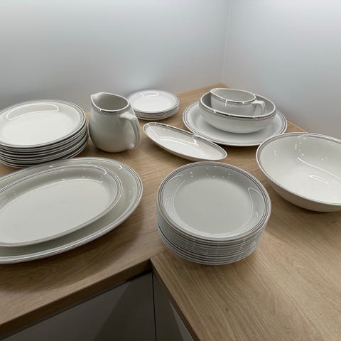 5kpl matalia, syviä ja leipälautasia, 8kpl pieniä matalia lautasia ja kaadin. Erittäin hyväkuntoisia.