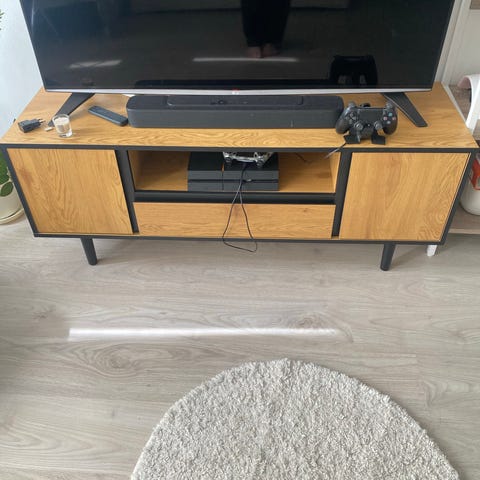 Myydään valkoinen TV taso. Leveys 100cm, korkeus 53cm ja syvyys 36cm. Hinta 30e