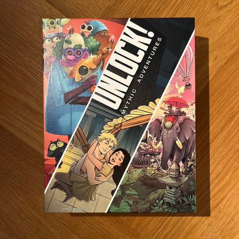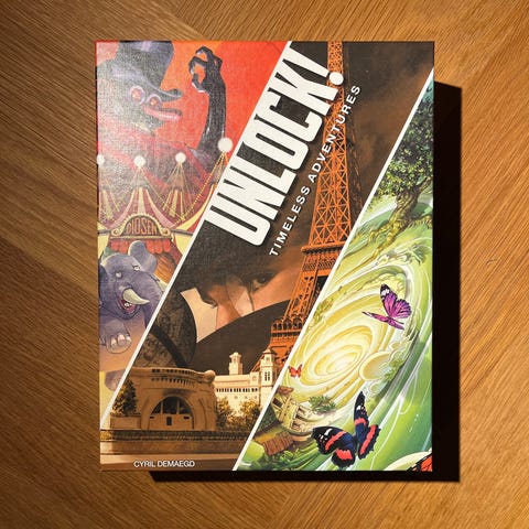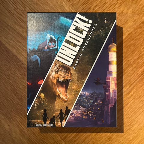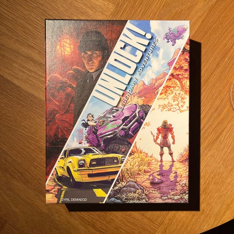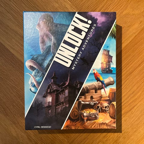 Unlock! Escape Adventures -lautapeli. Peli sisältää kolme erillistä seikkailua korttipakkoina. Peliä pelataan ilmaisen mobiilisovelluksen avulla.
