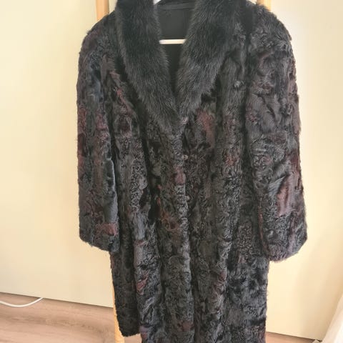 Vintage-turkki lampaan nahkaa arviolta 60-luvulta. Silloin ollut pitkä turkki. 80-luvulla turkisliikkeessä muokattu nykyiseen lyhyeen malliinsa. Pientä kokoa, arviolta S.