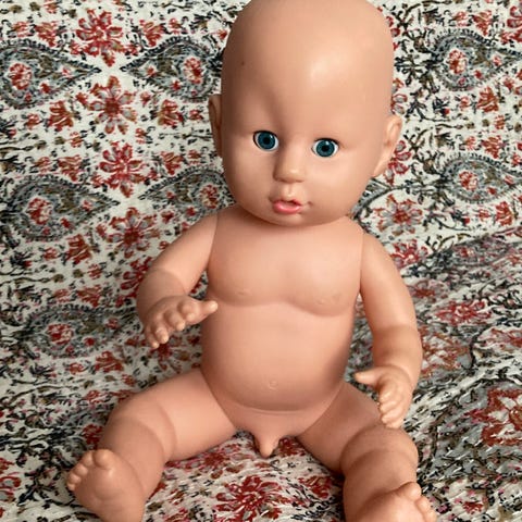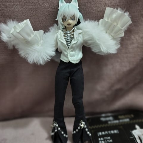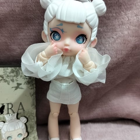 Nukke on kuin uusi ja sen mukana tulee kädet,laatikko,nukkekortti,vaatteet,mini puzzle ja nukke.