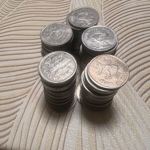 Myydään 54 kpl markan kolikoita. Kolikot vuosilta 1964-1994. Nouto Turku tai lähetys Matkahuollolla tai ärräpaketilla. Maksutapa mobilepay tai käteinen.