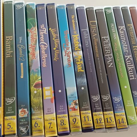 8 Disney dvd.tä. joista 4juhlajulkaisua. Katsottu max.kerran läpi tai uusia.