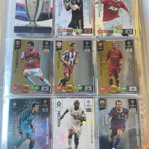 Panini Adrenalyn XL UEFA Champions League Nordic Edition -jalkapallokeräilykortit. Kortit perustuvat Mestarien liigan joukkueisiin ja pelaajiin. Kokoelmassa on tavallisia pelattavia kortteja sekä erikois- ja Limited Edition -kortteja. Kortit soveltuvat sekä keräilyyn että Adrenalyn XL -korttipelin pelaamiseen. Kuvat esittävät osan korteista ja niiden kunnosta.
