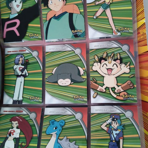 Myydään kahdesta eri sarjasta. Keskimmäinen kortti on holo. Aavistuksen paistaa valkoinen reuna jostain kohtaa kortteja.