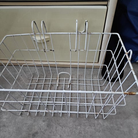 Metallinen polkupyörän etukori. Väri musta. Ei tullut koskaan itselle käyttöön.