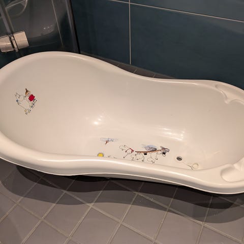Vauvan Muumiaiheinen kylpyamme. Vain muutaman kerran käytetty, joten on erittäin siisti. Toinen reuna korotettu, tukeva rakenne ja pohjassa käyttöä helpottava tyhjennystulppa. Vain haku.