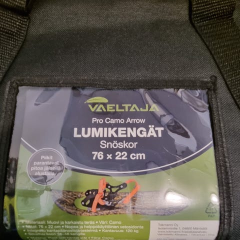 Myydään kahdet siistissä, käytetyssä kunnossa olevat TSL810-lumikengät. Toisten väri harmaa, toiset mustat. Molemmissa kaikki lukot ehjät ja toimivat, myös pohjien piikit ja terät kunnossa. Kantolaukut tallessa.