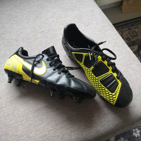 Nike T90 jalkapallokengät. Väri neon keltainen/musta. Vähän käytetyt.