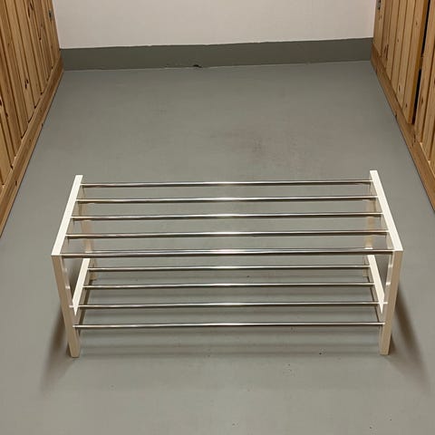 Annetaan vaaterekki. Pysyy kasassa, vaikka yhdestä kohtaa murtunut.