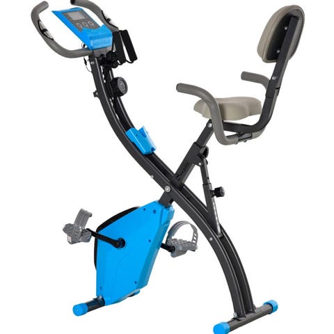 TUKEVA RAKENNE: Tämä kuntopyörä on valmistettu korkealaatuisesta teräksestä ja sitä tukee tukeva X-runkorakenne, joka tekee tuotteesta vakaan ja estää sitä kaatumasta.INTENSIIVINEN HARJOITUS: Tällä polkupyöräharjoittelijalla voit paitsi vahvistaa sydän- ja verisuonijärjestelmääsi ja polttaa kaloreita, myös harjoitella tehokkaasti käsivarsien, jalkojen, vyötärön ja pakaroiden lihaksia.TOIMINNOT: 5-portaisesti säädettävä istuin ja säädettävä selkänoja auttavat sinua löytämään nopeasti optimaalisen istuma-asennon. 8 poljinvastuksen tasoa auttavat sinua kehittämään kestävän, terveellisen harjoitusohjelman, jonka intensiteetti kasvaa hitaasti. Selkeä LCD-näyttö näyttää nykyiset parametrit: skannaus, aika, nopeus, matka, kalorit, kokonaiskilometrimäärä, sykeTAITETTAVA: Tämä kuntopyörä voidaan helposti taittaa kokoon ja varastoida tilan säästämiseksi tarvittaessa. Sopii käytettäväksi kotona, toimistossa, kuntosalilla ja paljon muuta. m.TUOTTEEN TIEDOT: Kokonaismitat: 43W x 97D x 109K cm, koko taitettuna: 43L x 56S x 129K cm. Säädettävä korkeus 155-180 cm. Vaatii 2 AAA-paristoa (EI SISÄLTYY mukaan).