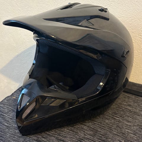 Nolan N53 motocross-kypärä. Täyskypärämalli, jossa pitkä lippa ja laaja leukasuoja. Väritys keltainen, punainen ja musta graafisilla kuvioilla. Soveltuu erityisesti motocrossiin, enduroon ja muuhun offroad-ajoon. Kypärässä pehmustettu sisäosa ja ilmanottoaukkoja paremman ilmanvaihdon takaamiseksi.