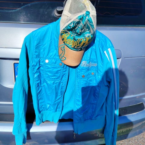 Myydään sininen kokin takki koossa M. Napit saa mukaan.