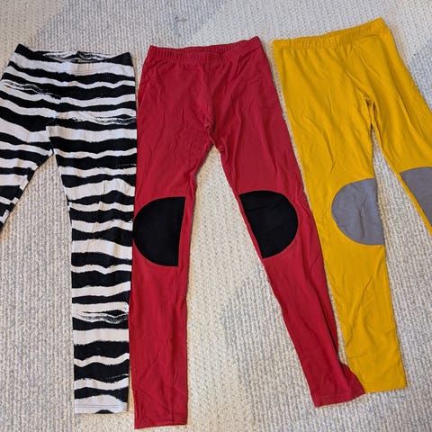 Suomalaisen Neulomon naisten leggingsit koossa S. Sinisävyinen kuosillinen malli, jossa joustava vyötärö. Materiaalina puuvillapohjainen joustoneulos, joka sisältää valmistajan pesulapun mukaan puuvillaa, modaalia ja elastaania. Kangas on tummemmasta osasta vähän haalistunut tai sitten sen kuuluu olla tuollainen, kuten kuvassa näkyy.