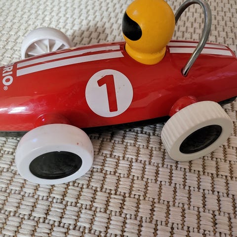 Myydään Brion punainen kilpa-auto.