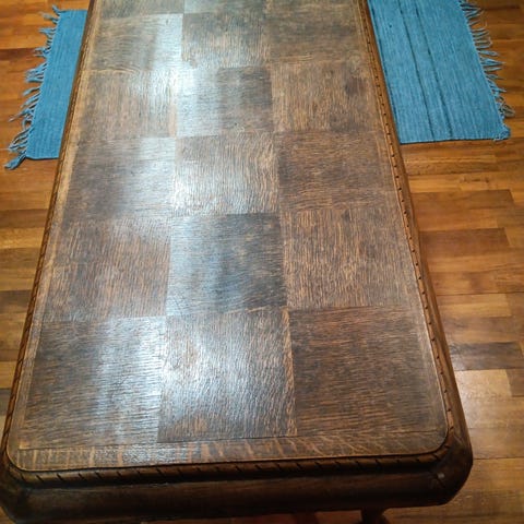Hieno vanha pöytä, ilman liinaa pinta vaatii uutta lakkausta. Mittatilaus pitsiliina tulee mukaan.
