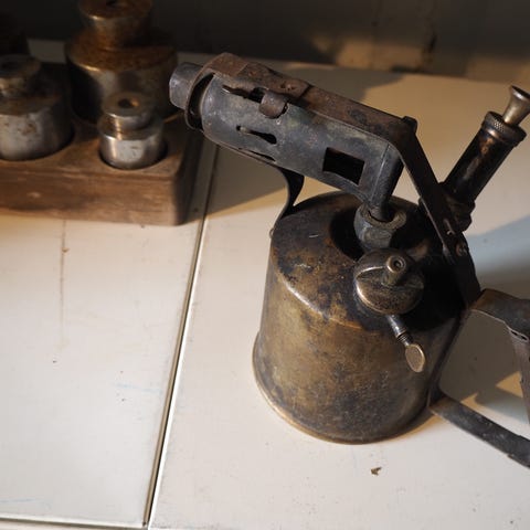Käyttämätön höyrykone alkuperäisessä laatikossa.