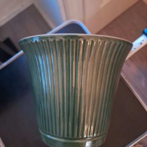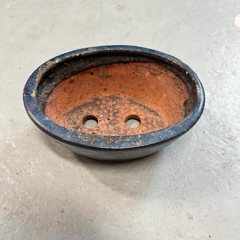 Bonsairuukku, jonka ulkopinta on vihreä ja sisäpinta terrakotan värinen. Pohjassa on reikä, joka helpottaa vedenpoistoa. Halkasija noin 10 cm.