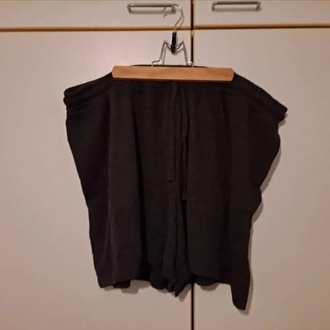 Hartiahuivi, käsiaukot (kuva 20), 100% akryyli. Lämmittää mukavasti koko selkää, niskaa ja mahtuu kädetkin alle jollet laita aukoista. Kuvassa taitettuna. Hinta 3€.