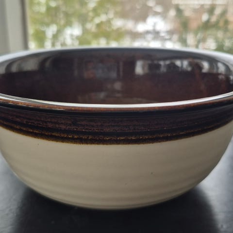 Kuvistä näkee, että yläreunassa on pieni halkeama tms. Ei ole vaikuttanut käyttöön ja hinta määritetty vian mukaan. Muuten kulhot ovat hyvässä kunnossa, ei juurikaan käytön jälkiä.