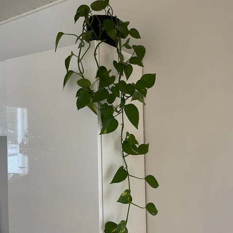 Valtavan iso kultaköynnös harmaassa ruukussa. Ruukussa on sisäänrakennettu vesitason ilmaisin, joka helpottaa kastelun seurantaa. Sopii sisätiloihin esimerkiksi hyllyn, kaapin tai takan päälle.