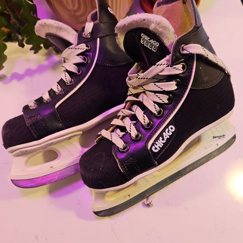 Chicago Super 3000 jääkiekkoluistimet lapsille. Koko 33. Väri musta-valkoinen. Kuluneet mutta käyttökelpoiset perusjääkiekkoluistimet harjoitteluun tai vapaa-ajan luisteluun.