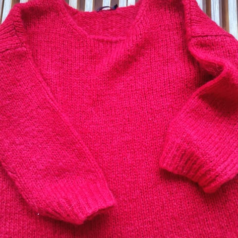 Neule on uusi,laput vain poistettu.Marimekon LILIASOLID malli.