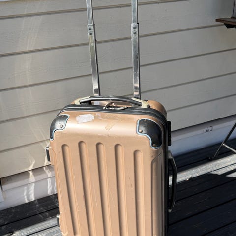 Ehjä laukku. Sisällä olevat "muoviremmit" hapertuneet, kun ollut varastossa. Korkeus n. 60cm.