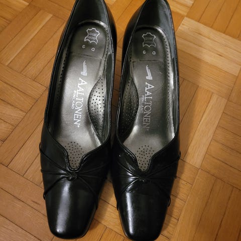 Hyväkuntoiset ja vähän käytetyt mustat mokka avokkaat. Kenkien merkki on Stockmann, josta ne myös on ostettu. Korkojen max. korkeus on 6 cm. Ostaja maksaa tarvittavat lähetyskulut.