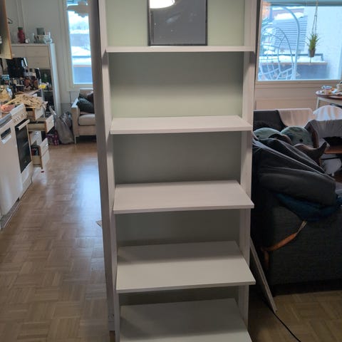 Valkoinen tikashylly. Pieniä käytön jälkiä mutta eivät näy kun läheltä katsottuna. Vastaava tuote:https://www.veke.fi/product/arki-kapea-tikashylly-33x180-cm-valkoinen