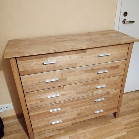 Koivupuinen lipasto, jonka käyttökunto hyvä ja pinta hyvässä kunnossa. Moitteena alaosassa olevat pinnan kulumat (ks.kuvat), joiden osalta kunto kohtalainen. Helppo käsitellä, sillä täyttä puuta.