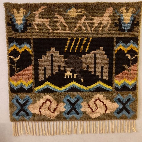 Vanha, hyväkuntoinen Aappo Härkösen ryijy Satumetsä. Kauniit, luonnonläheiset värit. Mukaan saa halutessaan metallisen tangon ripustamista varten.