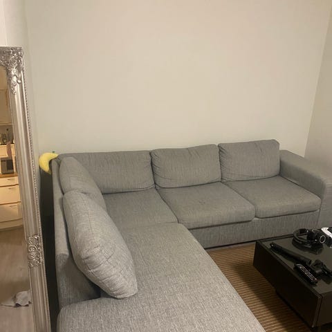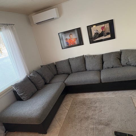 Myydään vaaleanharmaa muhkea kulmasohva